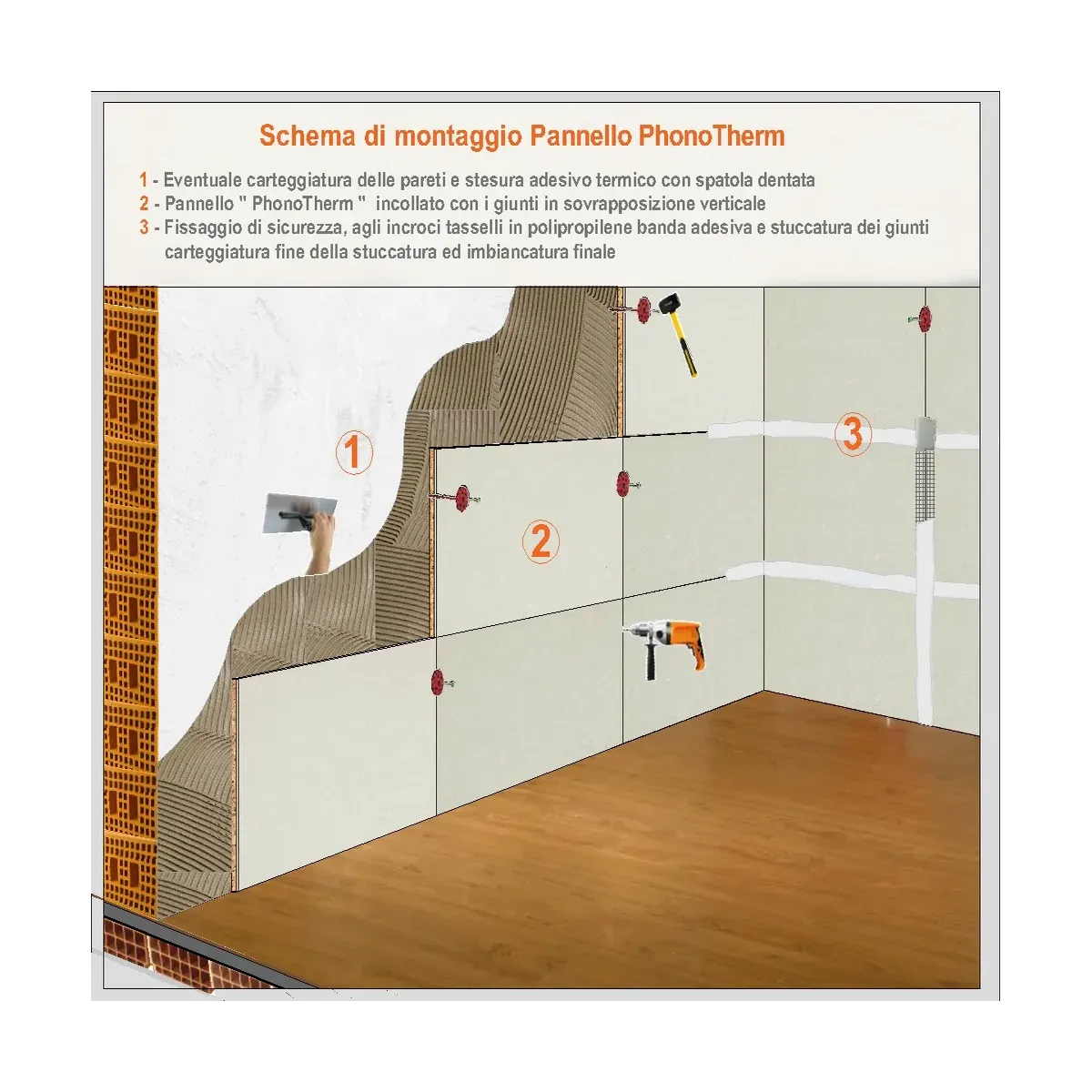 Un breve tutorial di installazione a parete del PhonoStop S nelle sue sequenze di montaggio