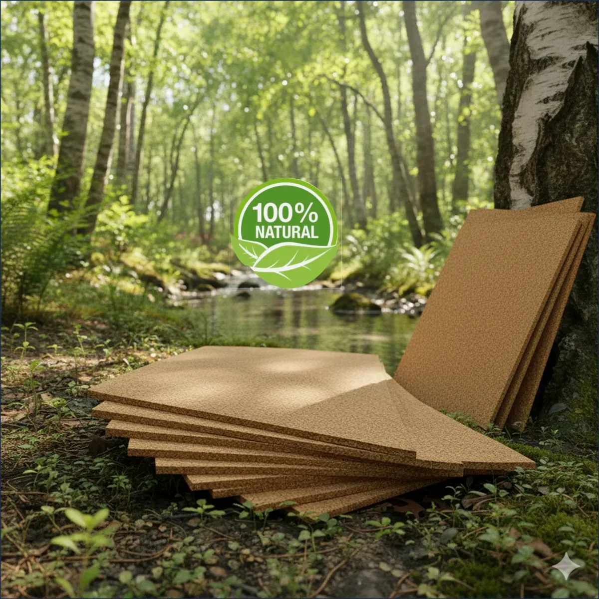 Il pannello in sughero macinato naturale biondo è stato bollito, compresso ed incollato con adesivo atossico (del tipo utilizzato per uso alimentare e quindi garantisce l'atossicità del prodotto).