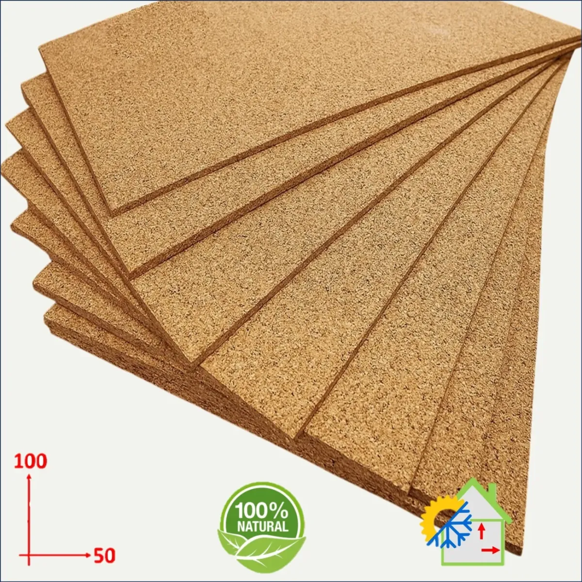 Sughero biondo naturale a grana medio fine costante, adatto particolarmente come rivestimenti di pareti a basso spessore , isolamenti di ponti termici su cemento armato, eccezionale isolante acustico per calpestio da impiegare sotto ai massetti di posa dei pavimenti, in particolare per unità abitative sovrapposte.